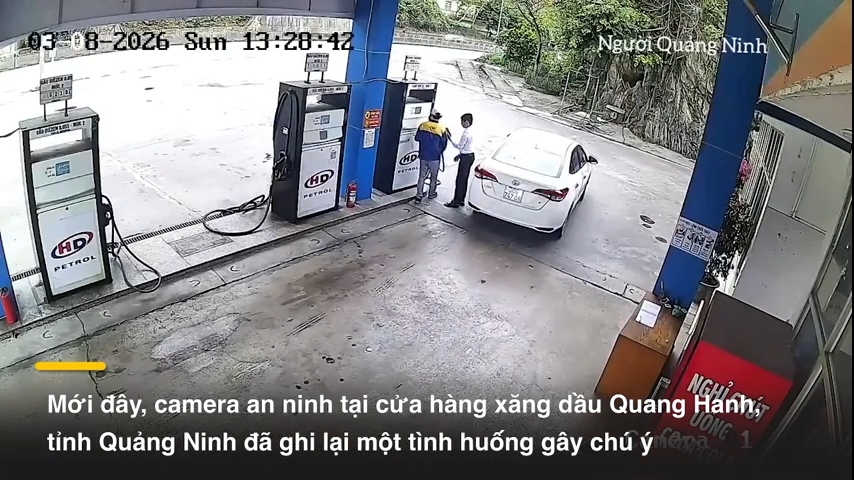Camera an ninh tại một cửa hàng xăng dầu ở Quảng Ninh ghi lại cảnh một người đàn ông đi ô tô vào đổ xăng nhưng lại “tiện tay” lấy trộm chậu cây cảnh đặt trước cửa hàng.
